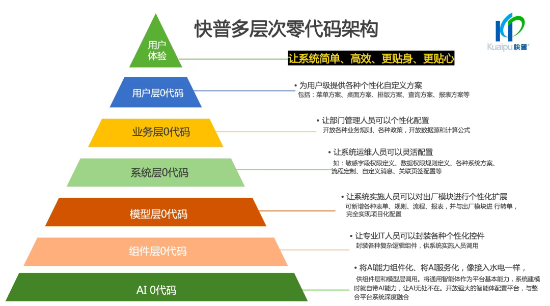 针对这一核心问题,温董详细阐释了快普独创的 “多层次零代码架构” 如何助力企业实现“小快轻准”转型: